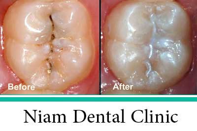 این درمان با آمالگام و کامپوزیت شبیه دندانهای دائمی انجام می شود . زمانیکه یک دندان شیری دچار پوسیدگی شده باشد ، بعد از تزریق بی حسی ، پوسیدگی ها حذف شده و حفره پر می شود .